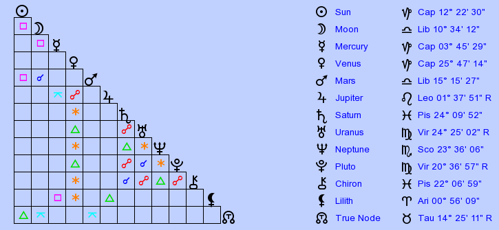 This aspect presents you with a chance to attain a higher reasoning in spirituality by self-sacrifice and working diligently to aid others. You will be able to put your necessities on the back burner to do what needs to be done for those loyal to you and this kind of service is happily done by you. You can easily combine your idealistic views with realism in a fantastic way. You will often remove your emotions from a situation so that you may finish what youve started. Any dream you aspire to, you will put forth a great deal of effort to accomplish. You are able to get by on mere scraps when you feel it is needed to achieve your aim. Imaginative applied artistry is your specialty. This aspect implies that the native is protected spiritually by karma from a previous life where they had aided others.