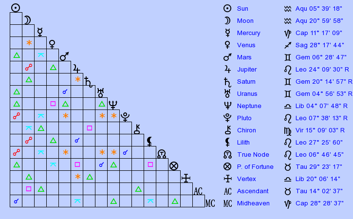 You hold a large amount of both mental and physical energy. Always on the go, buzzing from one place to another, engaged in your many interests, sometimes you are involved in more than one activity at the same moment! With your lively mentality and curiosity, you require a large amount of stimulation to keep you from getting bored. You seek out new data and love to learn about anything you can get your hands on. It is also of great fun to you to engage yourself in challenging, competitive conversations with others where you can show off your wit and intelligence. You may find yourself suffering from nervous tensions due to your overly active mind, and it would be beneficial for you to establish some sort of exercise routine to relieve the pressure. You are likely to be animated and expressive, often communicating using your hands. You probably enjoy working with the hands somehow and it is possible that you do not have a dominant hand preference. At times you can become so excited about an opportunity that you will venture forward without thinking things through; try to slow down long enough to obtain a clear picture of the situation before entering into it. You dislike standing still and may engage yourself in activities that are not necessarily wholesome or beneficial, just for the thrill of having something to do. Exploring distant lands and cultures is enjoyable to you as you can acquire knowledge from each new situation. There is a tendency towards being prone to accidents involving your arms or shoulders, particularly accidents involving excessive heat. Many times these misfortunes could have been prevented had you been more patient rather than rushing to get things done. It would be best for you to stick to shorter assignments as you work well for brief, intense amounts of time but encounter difficulty if you must sustain your energy and interest for extended periods. Often you will try to multitask, though end up taking on more than you can realistically complete. You dislike routine and require diversity in your projects and in your life in general. You are mentally quick and bright and are interested in playing games or somehow testing your mental agility. Mental competition with others tickles your fancy and you have more stamina for mental activities than you do for the physical sort. On your journey to success, you prefer to utilise your excellent social skills, intellect, quick-wit, astute observations, and ability to articulate yourself. You have a robust sense of humour that tends towards the dark side. Try to pace yourself as you may throw yourself into things with full concentration, only to find you cannot sustain the energy and are unable to continue; working a bit more slowly and steadily will allow you to better keep your word.