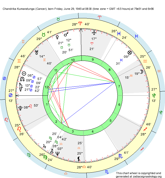 Birth Chart: Chandrika Kumaratunga (Cancer)