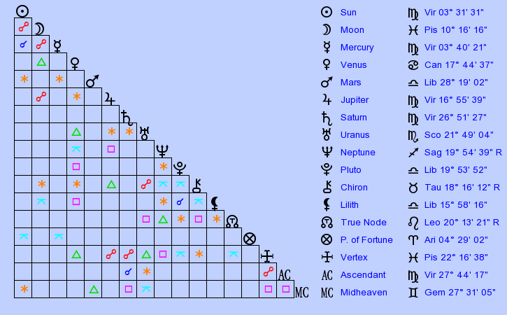 Your mind is gentle though insightful, and you possess good instincts. You are likely interested in theoretical or supernatural matters. Information is effortlessly absorbed and you may comprehend more than you care to express. It is easy for you to read others and to sense what their true intentions are by noting their physical gestures and signals, though you tend to keep this to yourself. Hidden adversaries may negatively impact your life through their words. You must develop your self-confidence and curb your anxiety or you will run into trouble. Hearing and your ears may be particularly vulnerable to injury or you may not be able to hear as well as others.