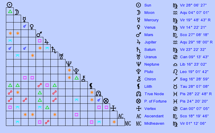 Creativity comes easily to you and you are most successful at reaching your aims when those you care for are there to encourage you. You are able to find a perfect balance between independence and connecting with others. You are self-sufficient, doing just fine alone whenever needed. Previous lives were used to master your emotional reactions and they are now harmonious. Good karma draws good fortune to you in all aspects: status, home-life, friendship, respect, healthiness, and monetary assets. Naturally capable and talented, you soar to the top either by gaining the respect and admiration of those in high places who will aid you on your journey, or you yourself find an area of expertise where you create your own success. Both the external and internal forces at work for you are blended harmoniously, making your life a bit easier than it could otherwise be. All of your challenges are aided by this aspect and despite the obstacles, you will find tranquillity.