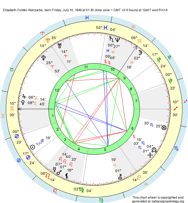 Birth Chart: Elisabeth Forster-Nietzsche (Cancer)