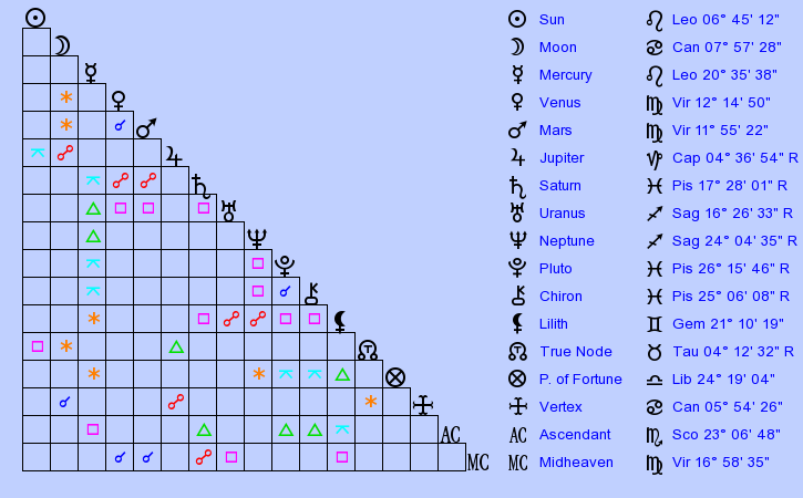 Highly interested in foreign cultures, you are likely to move away from where you were raised. Travelling in all forms is very appealing to you and you are likely to experience a gain from these situations. You are able to be a diplomatic presence between different cultures. There is a strong interest and enjoyment in religious ceremonies, philosophical studies, education, or law and you enjoy creative material brought to you from other cultures such as music, art, or items that are aesthetically pleasing. You are just and reasonable in legal transactions.
