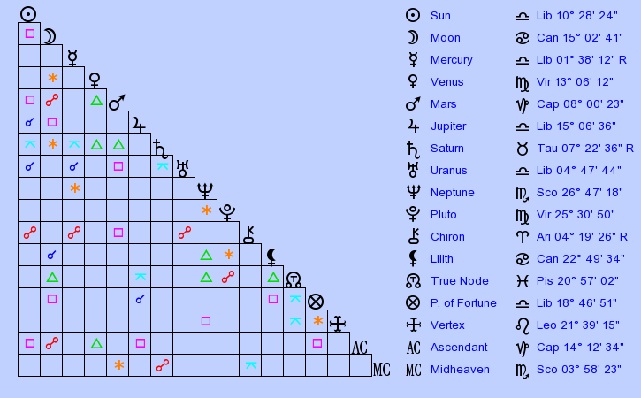 You like to keep your feelings under a tight reign. This placement helps to balance your feelings even when circumstances are difficult. Others may be frantic during these times, yet you remain calm and collected. You are reasonable and unbiased during stressful situations which help you to solve the underlying issue amidst emotional chaos. This placement allows you to concentrate more effectively. You do not skirt your duties and people know they can rely on you to do what you have committed to doing. You are loyal to those in your circle and to the people you feel close to, supporting them behind the scenes. You dislike being idle and enjoy watching the fruit of your labour. Mentally you tend to stick to the conservative route, letting tradition guide you. Frivolous thoughts for the sake of fun are not really your cup of tea; you take a more sombre approach. However, you are not always able to show your feelings towards those you care for. It would be beneficial if you could develop a more open manner and convey these inner emotions outwardly to them somehow. You are independent and methodical, as well as having a good ability to organise, handle money and business, and behave diplomatically when interacting with people. You are very patient and willing to persevere until you have reached your goal. You are ethical, dutiful, faithful, and fair.