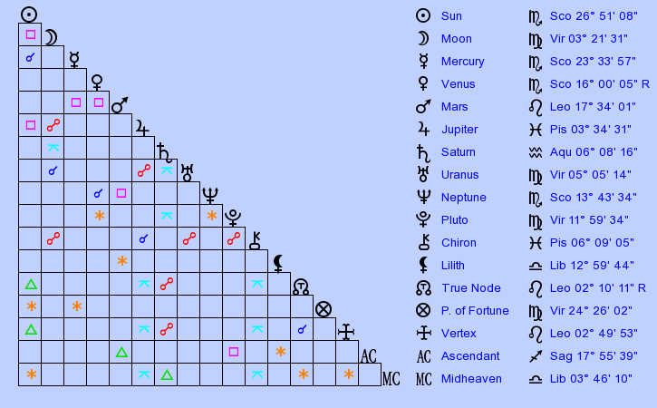 There are many different possibilities with this aspect and you may either provoke hostility in others due to selfishly putting your needs above the needs of others or create tension within yourself by desiring harmony with others while repressing your own needs. Your relationships may be challenging due to you going in full force one minute then holding back the next, or not being able to differentiate between love and lust, or possibly that you find yourself in partnerships where you and your partner both love and loathe each other. You may over-indulge in your sexuality instead of using your energy for creating something worthwhile. It is also possible that you will become enamoured with anyone that gives you the smallest amount of warmth.