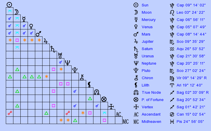 You have an intense drive for respect, power, and success. Often taking the role of leader as you find it difficult to be controlled by others. Mars in Capricorn can create an individual who throws around their power, mercilessly trampling others to get ahead. You are effective, diligent, coordinated, determined, reasonable, persistent, and willing to do whatever it takes to reach your goals. You direct your efforts towards tangible achievements. You work hard and have a great deal of patience; you are able to sacrifice present luxuries for future success. Dutiful and meticulous in your projects, you may need to be mindful of your tendency to over-work yourself. However, you are more likely to stick to traditional tactics, working slow and steady, rather than taking a risk; you will only invest yourself in a sure thing so that all of your hard work will not go to waste. You do not count on karma to get to where you need to be, you like to make it on your own merit. Naturally astute with a good head on your shoulders, you have an excellent business sense. You are driven, self-sufficient, reliable, accountable, and persevering. It may take you a bit longer to acquire knowledge, but when you do grasp something, you comprehend it thoroughly. You utilise your energy in an efficient manner and accomplishing your goals is of extreme importance to you. However, there is an inner tension that may contribute to a frustration and bitterness towards perceived slights. It would be beneficial for you to develop a way to relieve these tensions in constructive ways and let go of the past.