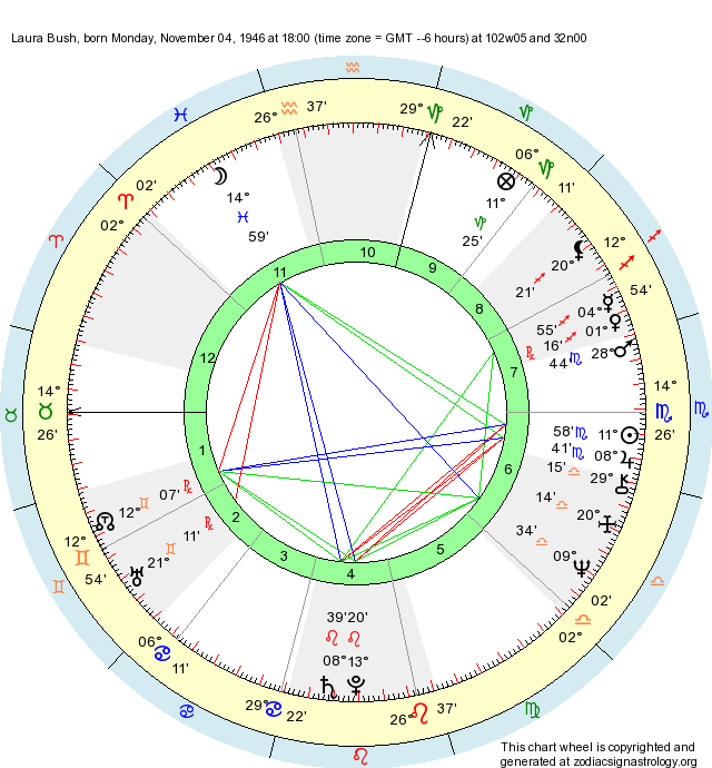 Birth Chart: Laura Bush (Scorpio)