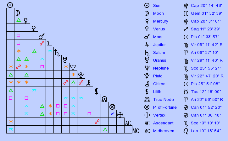 You like to keep your feelings under a tight reign. This placement helps to balance your feelings even when circumstances are difficult. Others may be frantic during these times, yet you remain calm and collected. You are reasonable and unbiased during stressful situations which help you to solve the underlying issue amidst emotional chaos. This placement allows you to concentrate more effectively. You do not skirt your duties and people know they can rely on you to do what you have committed to doing. You are loyal to those in your circle and to the people you feel close to, supporting them behind the scenes. You dislike being idle and enjoy watching the fruit of your labour. Mentally you tend to stick to the conservative route, letting tradition guide you. Frivolous thoughts for the sake of fun are not really your cup of tea; you take a more sombre approach. However, you are not always able to show your feelings towards those you care for. It would be beneficial if you could develop a more open manner and convey these inner emotions outwardly to them somehow. You are independent and methodical, as well as having a good ability to organise, handle money and business, and behave diplomatically when interacting with people. You are very patient and willing to persevere until you have reached your goal. You are ethical, dutiful, faithful, and fair.