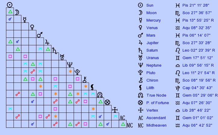 Creativity comes easily to you and you are most successful at reaching your aims when those you care for are there to encourage you. You are able to find a perfect balance between independence and connecting with others. You are self-sufficient, doing just fine alone whenever needed. Previous lives were used to master your emotional reactions and they are now harmonious. Good karma draws good fortune to you in all aspects: status, home-life, friendship, respect, healthiness, and monetary assets. Naturally capable and talented, you soar to the top either by gaining the respect and admiration of those in high places who will aid you on your journey, or you yourself find an area of expertise where you create your own success. Both the external and internal forces at work for you are blended harmoniously, making your life a bit easier than it could otherwise be. All of your challenges are aided by this aspect and despite the obstacles, you will find tranquillity.