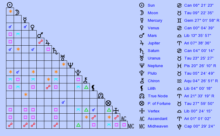 Creativity comes easily to you and you are most successful at reaching your aims when those you care for are there to encourage you. You are able to find a perfect balance between independence and connecting with others. You are self-sufficient, doing just fine alone whenever needed. Previous lives were used to master your emotional reactions and they are now harmonious. Good karma draws good fortune to you in all aspects: status, home-life, friendship, respect, healthiness, and monetary assets. Naturally capable and talented, you soar to the top either by gaining the respect and admiration of those in high places who will aid you on your journey, or you yourself find an area of expertise where you create your own success. Both the external and internal forces at work for you are blended harmoniously, making your life a bit easier than it could otherwise be. All of your challenges are aided by this aspect and despite the obstacles, you will find tranquillity.