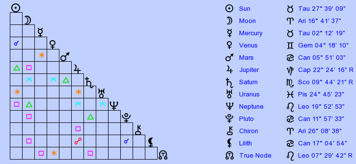 When choosing a romantic partner, you are more moved by intelligence than mere looks. You prefer someone who is an intellectual, inquisitive, clever, witty, and communicates well. Because you can lose interest quickly, you require a partner that will stimulate your mind and possibly even provide some sort of obstacle for you to untangle. You enjoy always having something exciting going on in your relationships; the more you can learn and experience, the better. Communicating, exchanging ideas, going on random adventures, and socialising with your companion are essential to your happiness in a partnership. However, you have a charming personality and are naturally flirtatious with others which can create problems if you are with a partner that tends to be more possessive and envious; these sorts of behaviours usually do not bode well with you. It is best if you are allowed freedom to interact with new people in your naturally out-going, charismatic, lively fashion. Be mindful not to break too many hearts on your way to finding the right partner, as you can tend to easily change your mind about a person quite suddenly or date multiple people at once. Commitment is difficult for you to invest in and you often enjoy the thrilling excitement of the early stages of romance more than the later stages. You are gifted in articulating yourself in all forms; writing, speaking, singing, and the like. You tend to remove yourself from your emotions and objectively analyse your feelings. If Venus is negatively aspected, you may have trouble with your lungs or the oxygen in your system.