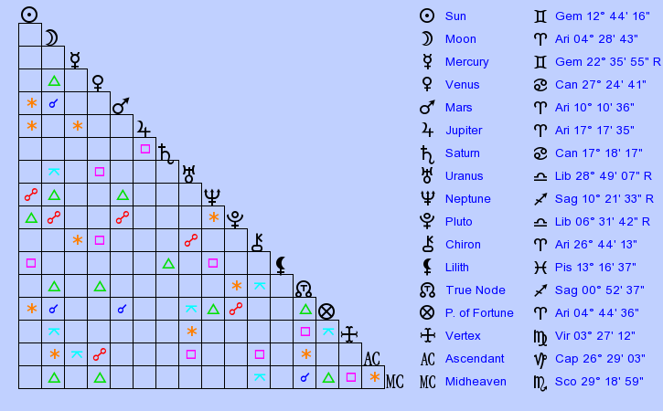 You never seem to tire out emotionally and it is important that you are able to divert some of this intensity into other avenues so as to stay steady and sane. You find it difficult to be inactive and will usually behave in an intolerant, grouchy manner when you are forced to do things at a slower pace than you would like. You can be very moody and your anger tends to erupt with little warning. Compromising is not easy for you as you prefer to strongly pursue what you desire, despite this causing disharmony with your spouse or family. You have a strong urge to compete with others on even small matters, though this may not be apparent to you. You are self-sufficient and require the utmost freedom to do as you wish. God help anyone who tries to insist you do something or in which way you are to go about it. You are susceptible to accidental injuries due to trying to do much too quickly; be patient with yourself and others. Usually your demeanour is caring and kind, though at times you can be a harsh critic and are too outspoken about other peoples flaws or mistakes. Mentally you process things speedily and therefore you are likely to react with impatience and irritation when others are unable to comprehend things as fast as you. This placement bestows you with better than average health and recovery time.