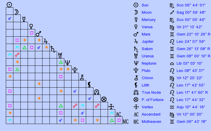 You hold a large amount of both mental and physical energy. Always on the go, buzzing from one place to another, engaged in your many interests, sometimes you are involved in more than one activity at the same moment! With your lively mentality and curiosity, you require a large amount of stimulation to keep you from getting bored. You seek out new data and love to learn about anything you can get your hands on. It is also of great fun to you to engage yourself in challenging, competitive conversations with others where you can show off your wit and intelligence. You may find yourself suffering from nervous tensions due to your overly active mind, and it would be beneficial for you to establish some sort of exercise routine to relieve the pressure. You are likely to be animated and expressive, often communicating using your hands. You probably enjoy working with the hands somehow and it is possible that you do not have a dominant hand preference. At times you can become so excited about an opportunity that you will venture forward without thinking things through; try to slow down long enough to obtain a clear picture of the situation before entering into it. You dislike standing still and may engage yourself in activities that are not necessarily wholesome or beneficial, just for the thrill of having something to do. Exploring distant lands and cultures is enjoyable to you as you can acquire knowledge from each new situation. There is a tendency towards being prone to accidents involving your arms or shoulders, particularly accidents involving excessive heat. Many times these misfortunes could have been prevented had you been more patient rather than rushing to get things done. It would be best for you to stick to shorter assignments as you work well for brief, intense amounts of time but encounter difficulty if you must sustain your energy and interest for extended periods. Often you will try to multitask, though end up taking on more than you can realistically complete. You dislike routine and require diversity in your projects and in your life in general. You are mentally quick and bright and are interested in playing games or somehow testing your mental agility. Mental competition with others tickles your fancy and you have more stamina for mental activities than you do for the physical sort. On your journey to success, you prefer to utilise your excellent social skills, intellect, quick-wit, astute observations, and ability to articulate yourself. You have a robust sense of humour that tends towards the dark side. Try to pace yourself as you may throw yourself into things with full concentration, only to find you cannot sustain the energy and are unable to continue; working a bit more slowly and steadily will allow you to better keep your word.