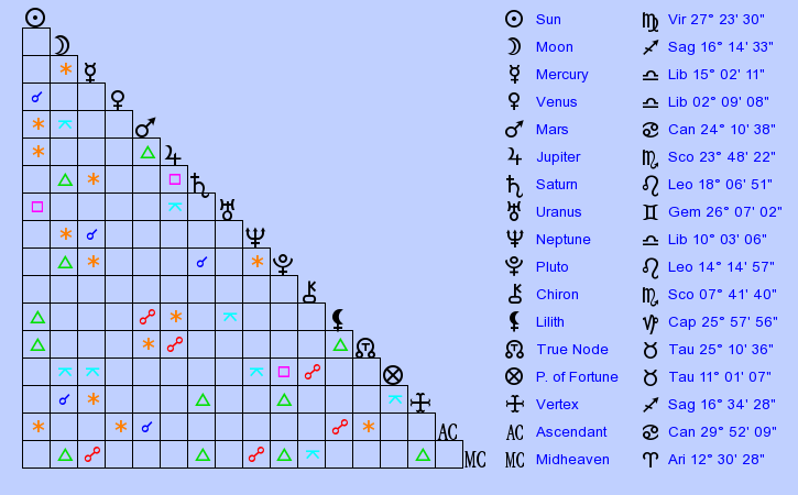 You tend to be rather emotional in your romantic involvements, as well as your involvements with children. In fact, all situations where children are present are emphasised. Though quite charming, you can be moody and fickle in your romantic relationships. Your craving to be loved and needed by another person may need to be tempered. You are likely to place too high a significance on enjoying yourself and being showered with attention from others. It is important to you to be able to express your emotional state at all times and to find pleasing circumstances. Your constant mood swings may stifle your creative pursuits. In a career, you are often drawn to teaching positions involving children or some sort of theatrical endeavour where your creativity may come forward. In either case, situations in your life tend to be dramatic.