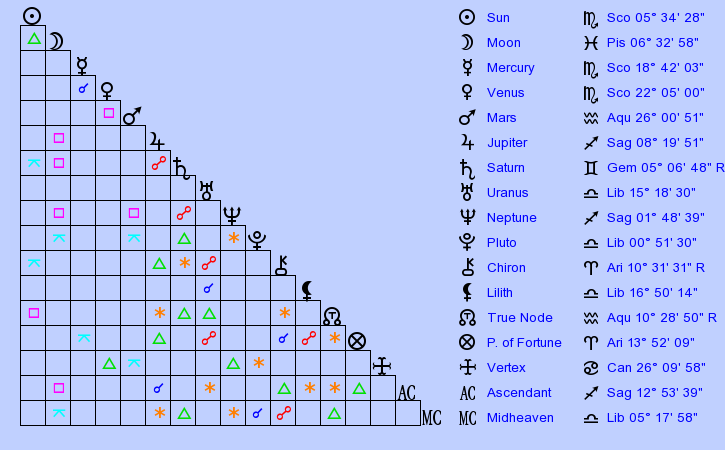 Birth Chart: Winona Ryder (Scorpio)